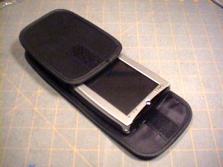 Because I purchased the cheapie version (there is a bumped-up version with 400Mhz, 64MB RAM, 48MB of ROM, and a cradle for an extra C-note) the box (which was just the shipping container, no pretty full color packaging to cherish for years to come) contained just the PDA, charge cable, sync cable, a case (Velcro-closure, without belt loop) and CD and manuals.