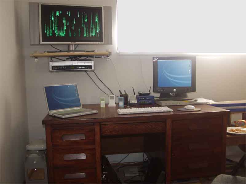Shown in the picture is my P4 3.0GHz workstation, on the floor. It powers dual 22" monitors that give me tons of real-estate for surfing the-gadgeteer and other tech-gadget websites.