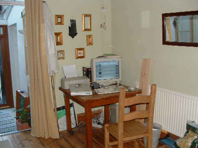 Here is my tiny space... I had to give up my lovely study when our second child, Alice, was born and she took the last remaining bedroom:( I have asked my wife to give her this space in the dining room but she says no so PDA247 has to be run from this patheticly small area until we get a bigger house...
