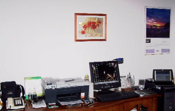 Not shown as well is my Palm T3 PDA, Compaq Tablet PC, Epson 960 printer and 24-port switch than runs cable to each and every room in the house.