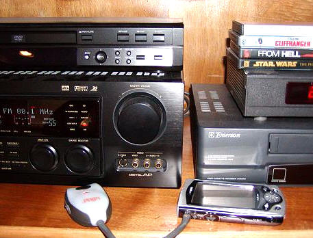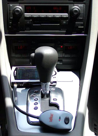 listening to MP3s from your PDA in the car. Here you can see my E-200 being used, but if you are an iPAQ owner that happens to have a PCMCIA sleeve and a 5GB Datapak...well, you can see the possibilities. How many hours of music does 5 GB translate to? ;0) I tested the irock! by placing it all over my fianc�'s car - including the backseat - and true to the manufacturers claim of 10-30 feet, I had no problem getting a clear signal over the car's stereo. Obviously you aren't limited to just PDAs, though. You can also use the irock! with CD, cassette and mini disc players, as well as any other player with a headphone jack. A less obvious application might be playing music directly from your laptop through a stereo system. It might be cool to use the irock! with a voice GPS system, too... |